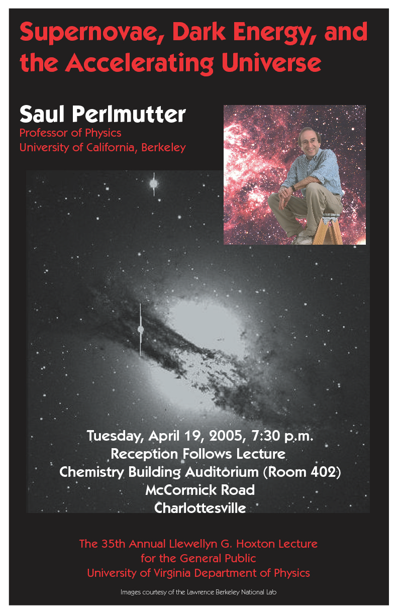 "Supernovae, Dark Energy, and the Accelerating Universe"Saul Perlmutter , University of California - Berkeley [Host: Brad Cox]